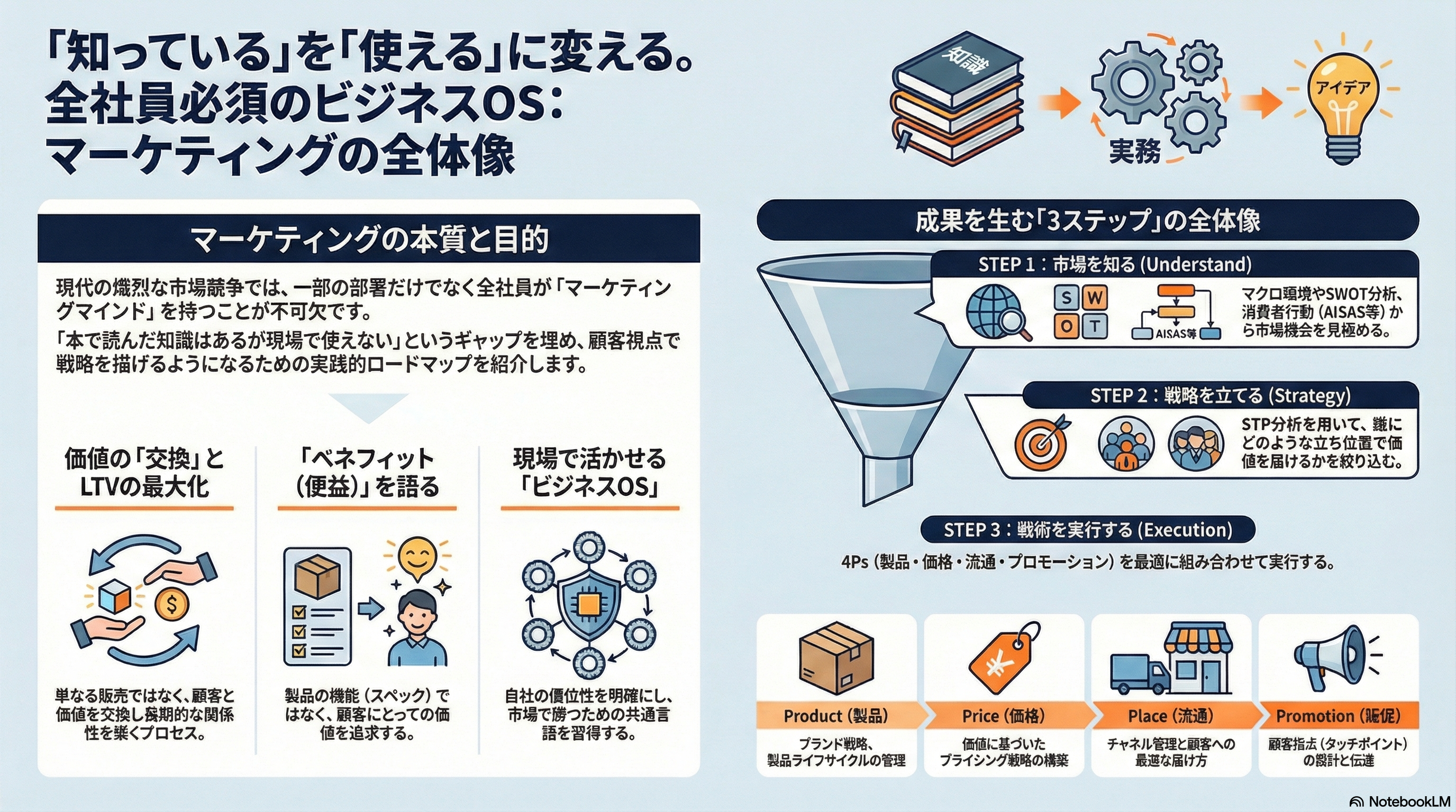 - ● マーケティング・ミックスの4Pを理解し、業務に活用するためのヒントが得られる